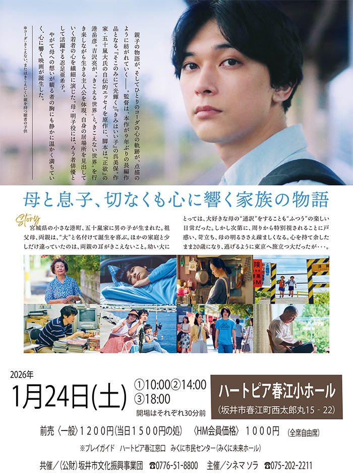 耳が聞こえない両親の間に生まれた、耳が聞こえる息子。聞こえる世界と聞こえない世界を行き来する主人公を吉沢亮が演じた映画「ぼくが生きてる、ふたつの世界」を上映します!